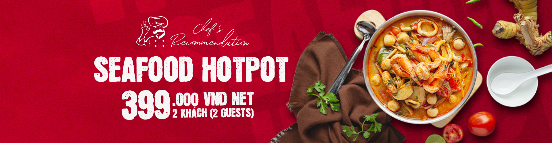 Trong tiết trời se lạnh này, còn gì tuyệt vời hơn khoảnh khắc quây quần bên nồi Lẩu Hải Sản bốc khói nghi ngút. Thưởng thức tuyển tập đặc sản vùng duyên hải với tôm giòn ngọt, mực tươi ngon, cá mềm mọng và nhiều hơn thế. Đa dạng các nguyên liệu kết hợp cùng nước lẩu đậm đà nóng sốt - được hầm nhiều giờ liền và nêm nếm vừa vặn bởi đầu bếp chuyên nghiệp của chúng tôi - chắc chắn sẽ đem đến sự bùng nổ vị giác.