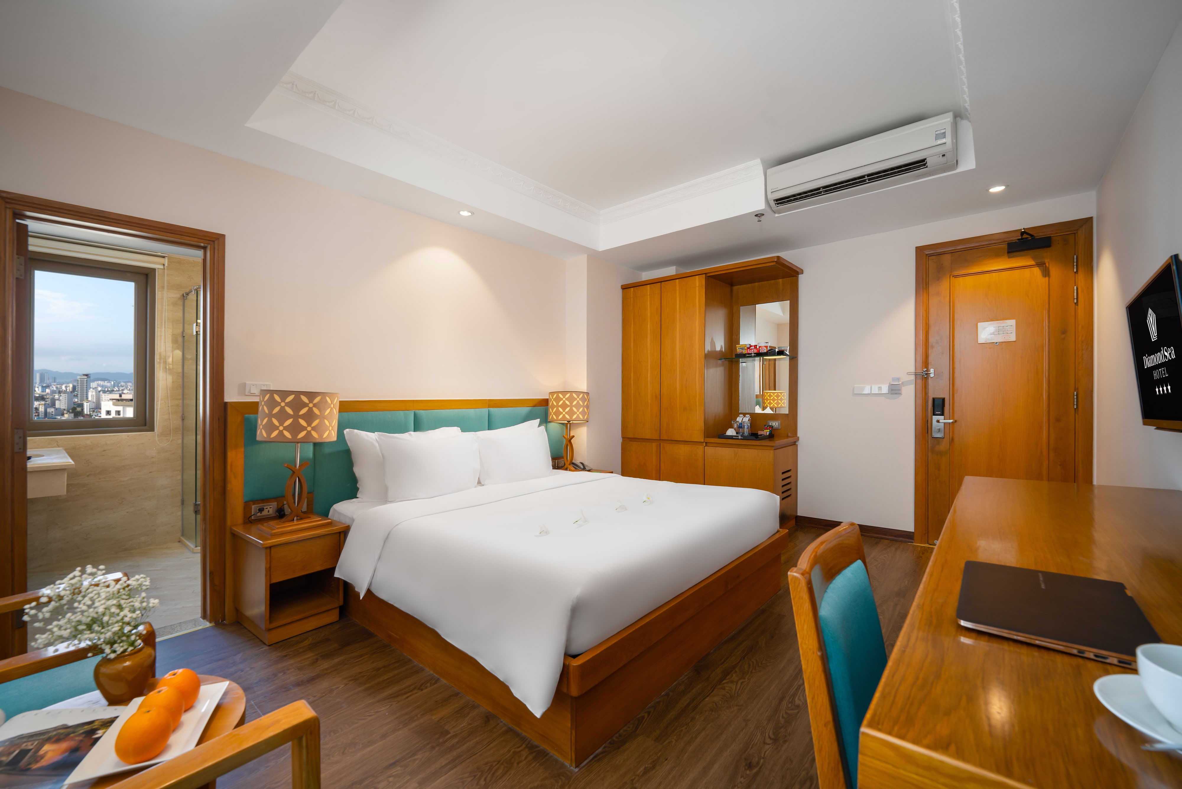 Phòng Junior Double mang đến không gian ấm cúng và đầy đủ tiện nghi, lý tưởng cho các cặp đôi, gia đình hoặc khách đi công tác muốn tìm kiếm sự thoải mái và thuận tiện. Với diện tích khoảng 28m2, phòng được thiết kế nội thất hiện đại và tiện nghi chu đáo mang đến cho bạn một kỳ nghỉ thú vị. Mỗi phòng được trang bị một giường đôi lớn, phủ vải cotton trắng tinh, bên trên là gối lông vũ và chăn lông vũ nhẹ, vòi sen cầm tay, khu vực làm việc tốt, TV màn hình phẳng với các kênh quốc tế…