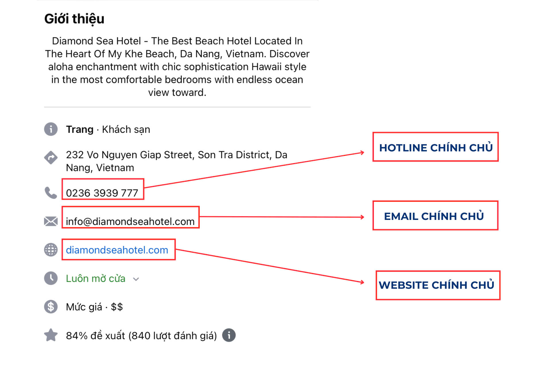 Diamond Sea Hotel Danang khuyến khích Quý khách hàng nên kiểm tra thông tin khách sạn trên đa nền tảng Google, Website,... hoặc liên hệ 0236 3939 777 để kiểm tra thông tin trước khi giao dịch.